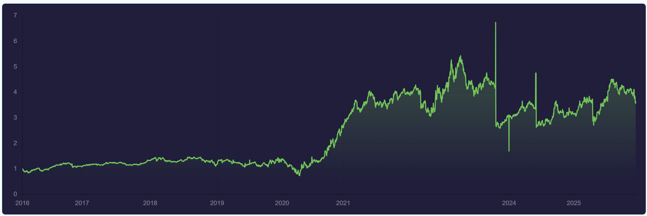 Wenn Ihr Interesse habt, folgt mir gerne genauso wie bereits 118.600 Börsianer auf dem Terminal und der stock3 App: https://terminal.stock3.com/#c/harald_weygand und Direktlink Android Direktlink iOS. Dort poste ich täglich solche Charts zu Makro-Themen, Analysen, Trading-Infos, Handelsperformance durchschnittlich 28% per annum.