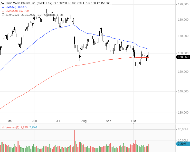 - Philip Morris Internat. Inc.Kursstand: 158,060 $ (NYSE) - Zum Zeitpunkt der VeröffentlichungVerkaufenKaufen