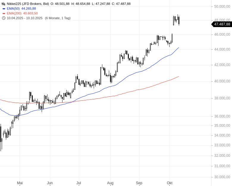 - Nikkei225Kursstand: 47.355,42 Pkt (TTMzero Indikation) - Zum Zeitpunkt der Veröffentlichung