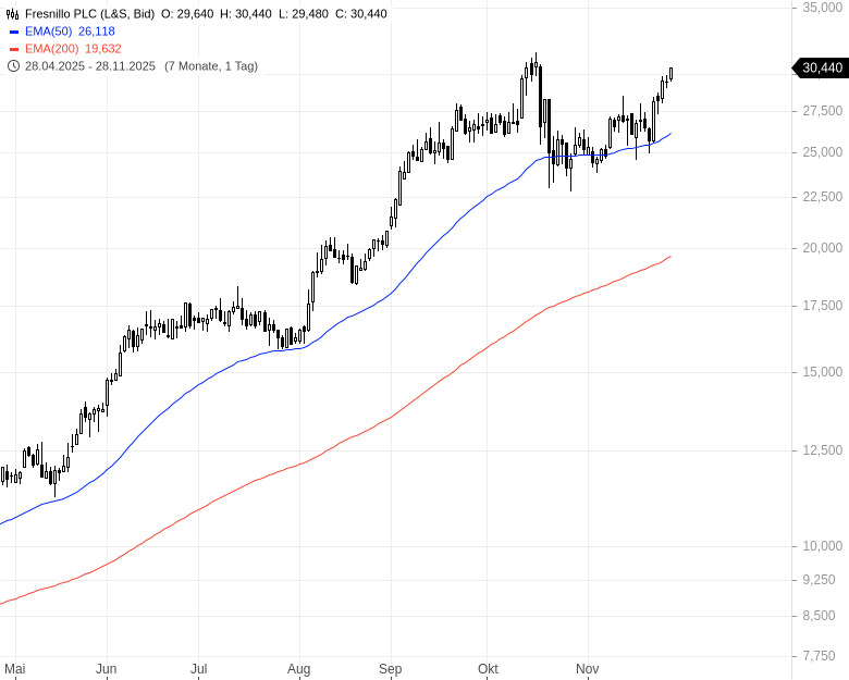 Im Score-Depot und auch privat bin ich seit Mai 2025 bei Fresnillo investiert. Das Kursplus seit dem Einstieg beläuft sich inzwischen auf mehr als 140 %. Damit ist die Aktie aktuell die am besten gelaufene Position im Score-Depot.