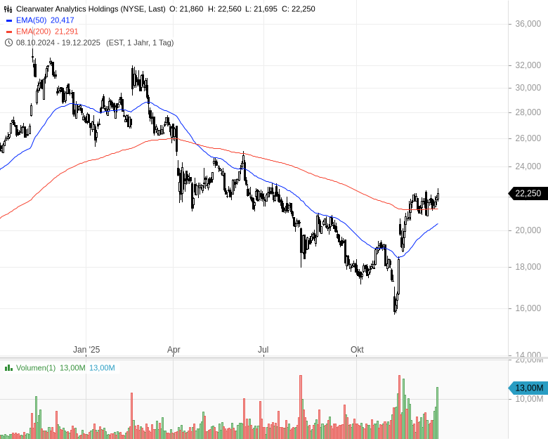 - Clearwater Analytics Holdings - ISIN: US1851231068 - Kurs: 22,250 $ (NYSE)