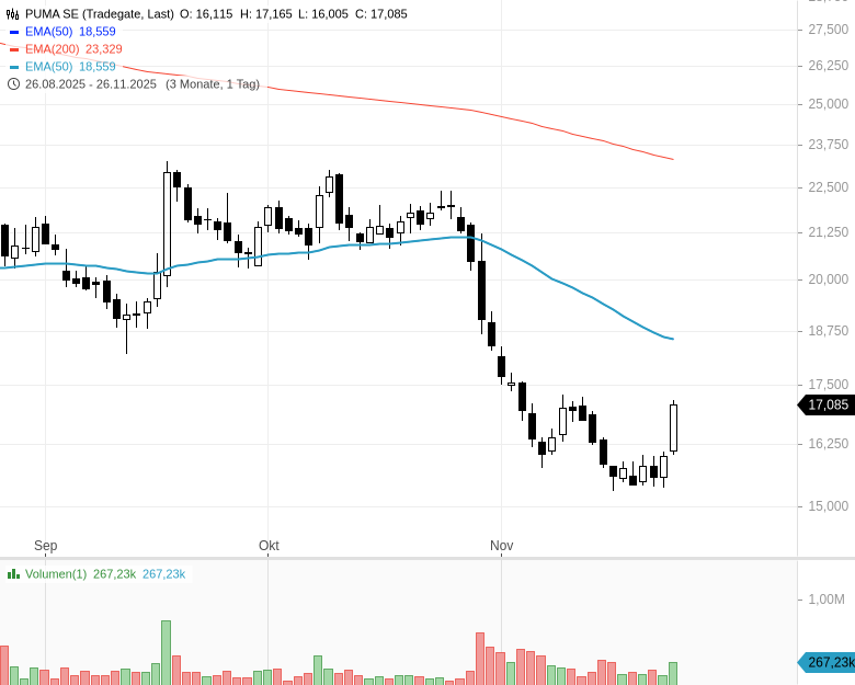 - PUMA SE - WKN: 696960 - ISIN: DE0006969603 - Kurs: 17,005 € (XETRA)