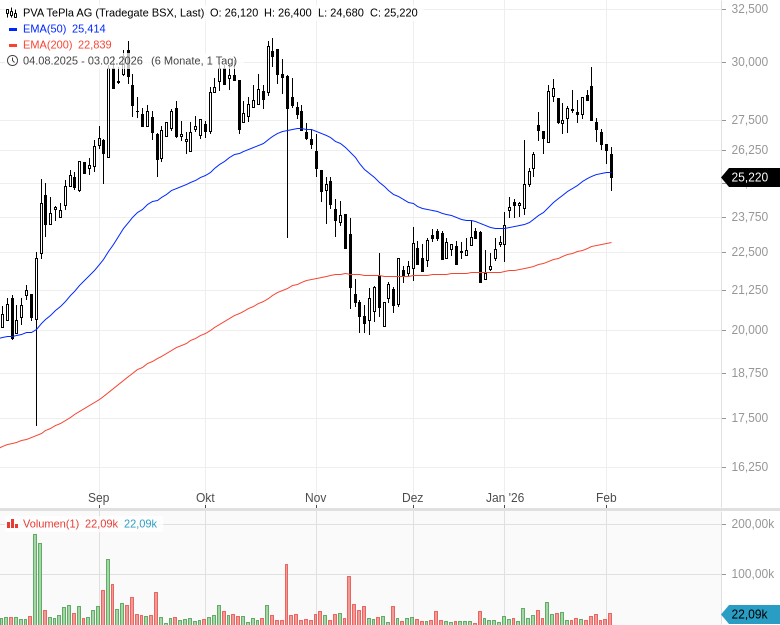 Für 2026 stellt der Vorstand einen Konzernumsatz von 255 Mio. bis 275 Mio. EUR in Aussicht (erwartet 288 Mio. EUR). Das EBITDA soll sich in einer Spanne von 26 Mio. bis 31 Mio. EUR bewegen (erwartet 43 Mio. EUR). Ab 2027 rechnet das Unternehmen mit einem Umsatz von mehr als 300 Mio. EUR und einer Rückkehr zu deutlich zweistelligen Wachstumsraten. Am mittelfristigen Ziel von rund 500 Mio. EUR Jahresumsatz hält der Konzern fest.