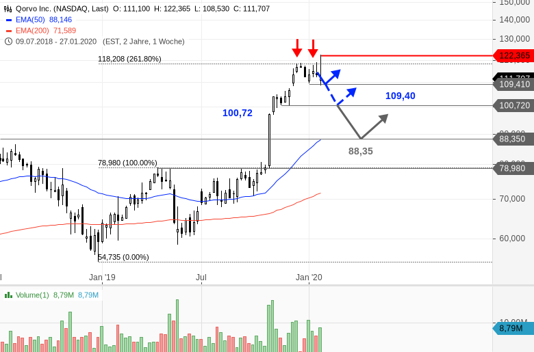 - Qorvo Inc. - WKN: A12CY9 - ISIN: US74736K1016 - Kurs: 110,815 $ (NASDAQ)