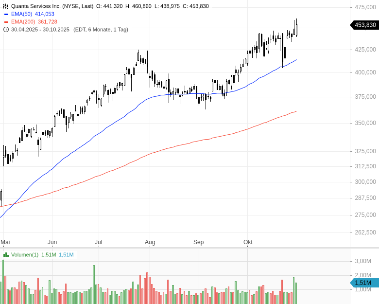 Seither konnte die Quanta-Aktie massiv zulegen und profitiert ähnlich wie auch Comfort Systems vom starken Ausbau der Infrastruktur für KI-Anwendungen.