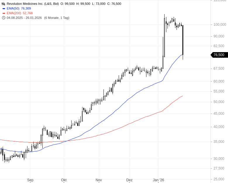 Für die Revolution-Medicines-Aktie steht nach der M&A-Euphorie nun wieder stärker der Newsflow aus der Pipeline im Vordergrund. Kurzfristig können Schlagzeilen rund um mögliche Bieter und wieder aufkeimende Verhandlungen hohe Volatilität bringen, mittelfristig dürften aber die Studienergebnisse in Pankreas- und Kolorektalkrebs die Richtung vorgeben.