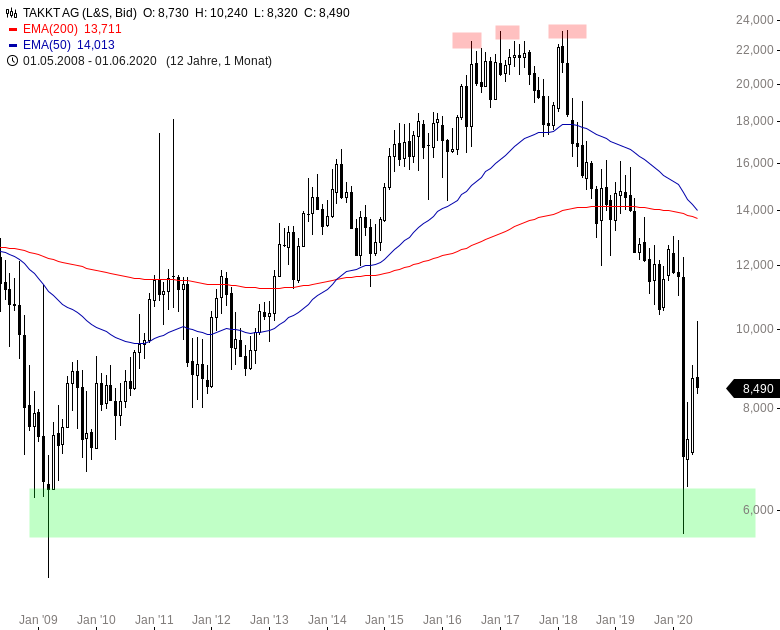 Im Zuge des jüngsten Ausverkaufs im Frühjahr im Rahmen der Corona-Panik wurden sämtliche Kursgewinne aus den vergangenen zehn Jahren wieder egalisiert und die Aktie setzte wieder in den Bereich um 6,00 EUR zurück.