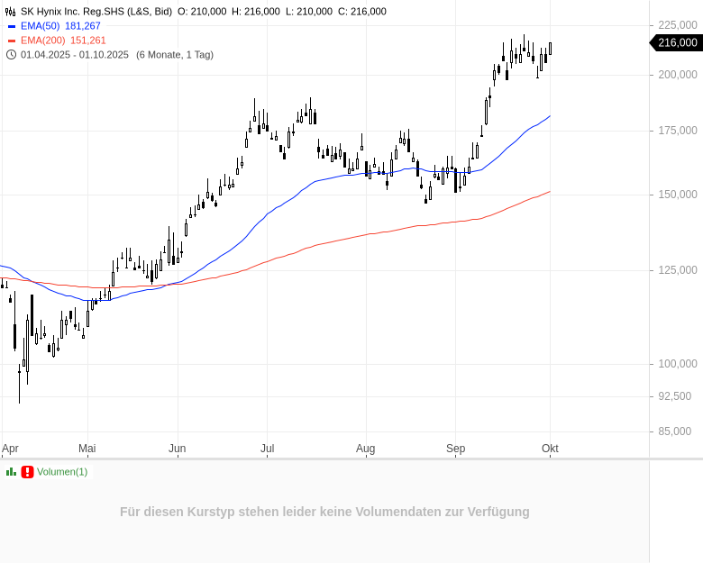 - SK Hynix Inc. Reg.SHSKursstand: 216,000 € (L&S) - Zum Zeitpunkt der VeröffentlichungVerkaufenKaufen