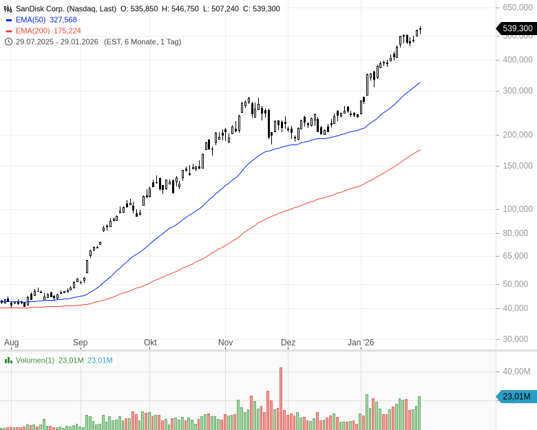 - SanDisk Corp. - WKN: A411ZM - ISIN: US80004C2008 - Kurs: 541,920 $ (Nasdaq)