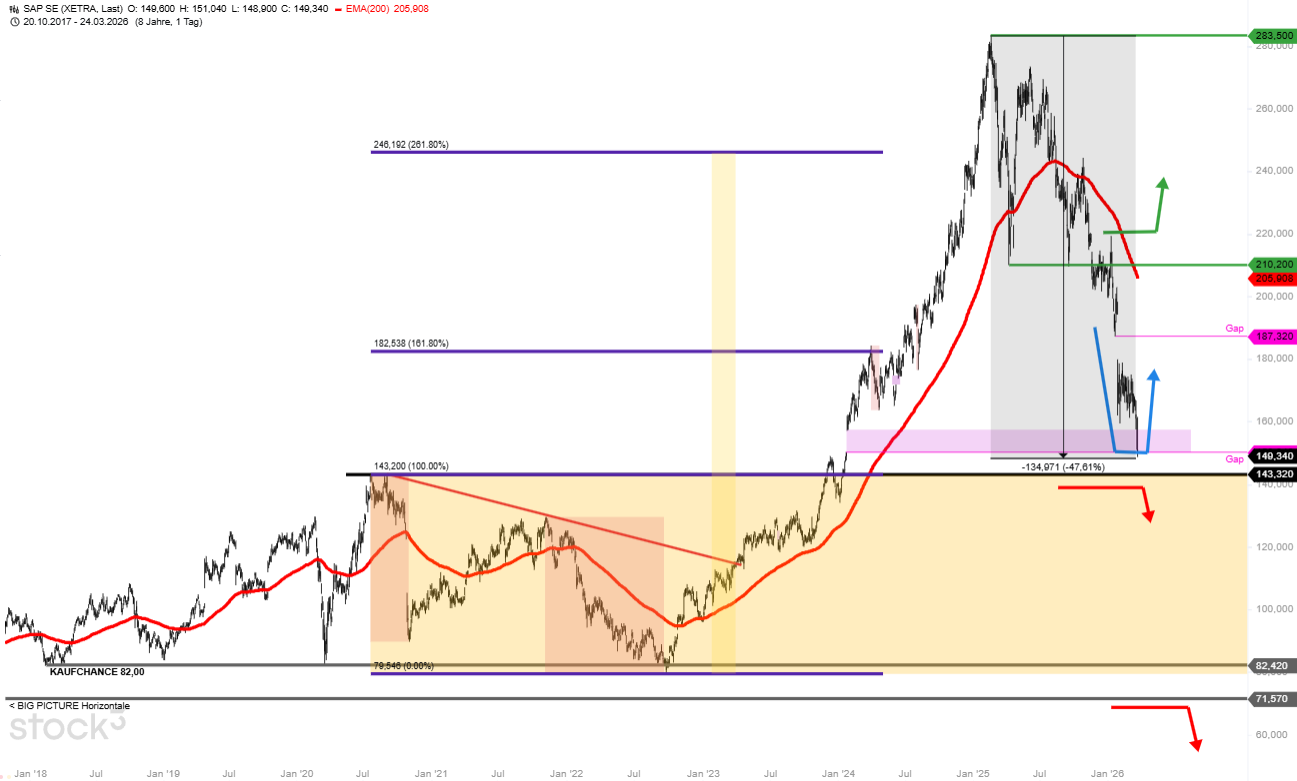 DENN: Unter 143 EUR (Wochenschlusskurs) ginge SAP schrittweise ins "Chaos" über, das wäre stark negativ!