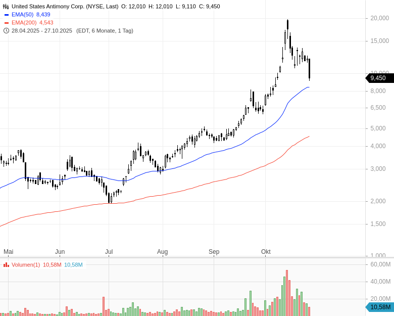 - United States Antimony Corp. - WKN: 868547 - ISIN: US9115491030 - Kurs: 9,450 $ (NYSE)