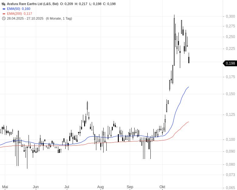 - Arafura Rare Earths Ltd - WKN: 787896 - ISIN: AU000000ARU5 - Kurs: 0,198 € (L&S)