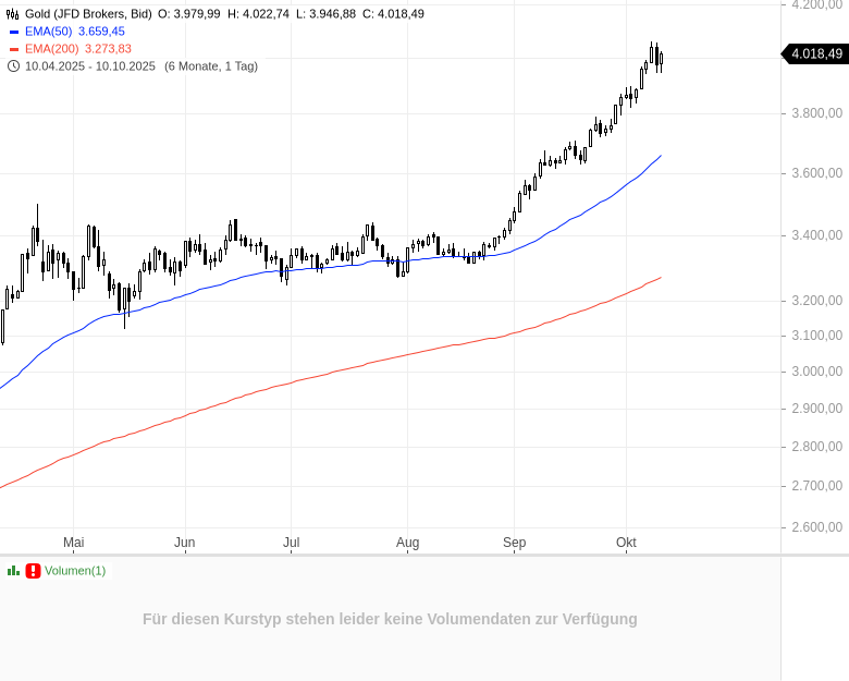 - GoldKursstand: 4.062,71 $/oz. (JFD Brokers) - Zum Zeitpunkt der Veröffentlichung
