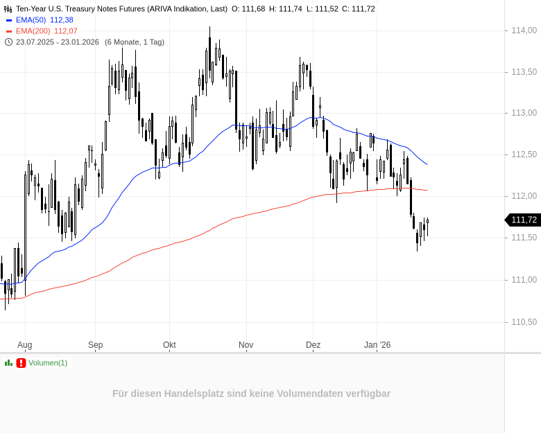 - Ten-Year U.S. Treasury Notes FuturesKursstand: 111,72 $ (ARIVA Indikation) - Zum Zeitpunkt der Veröffentlichung