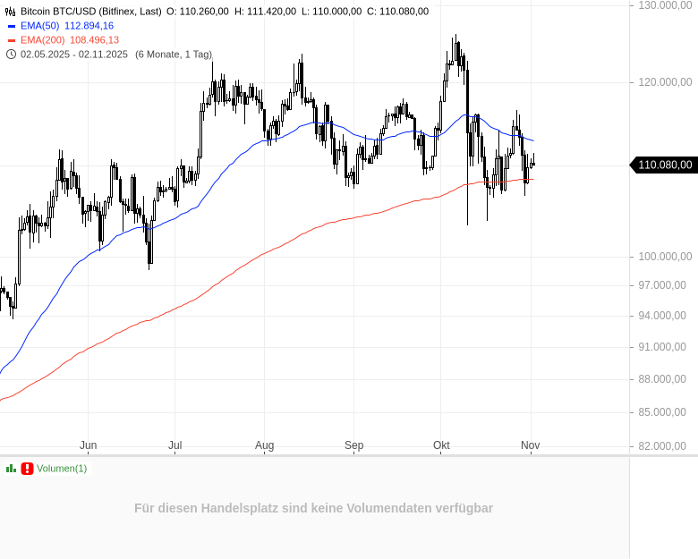 - Der Bitcoin zeigt ein technisch interessantes Bild: Der Differenzindex aus Sentiment und Grundvertrauen liegt bei -38 Prozentpunkten und signalisiert ein klares Kaufszenario. Während sich das kurzfristige Sentiment deutlich abgekühlt hat, bleibt das mittelfristige Grundvertrauen intakt. Das strategische Grundvertrauen erreicht starke 43 Punkte, ein konstruktives Fundament.
