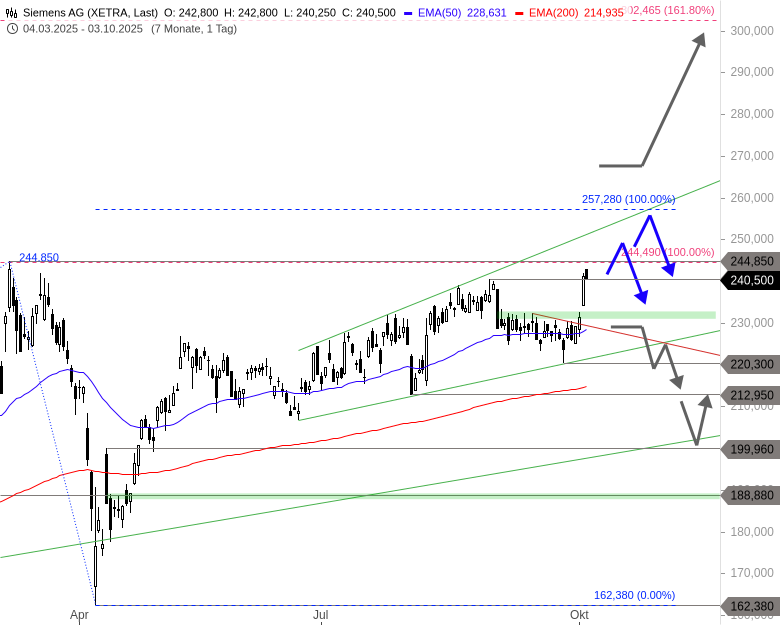 Diese Zielzone beginnt bei 254 EUR und erstreckt sich mit dem kurzfristigen Kursziel bei 257 EUR bis in den Bereich um 266 EUR. Erst darüber könnte die Aktie wieder den Schwung vom April und Mai entfalten und sogar in Richtung 300 EUR sprinten.