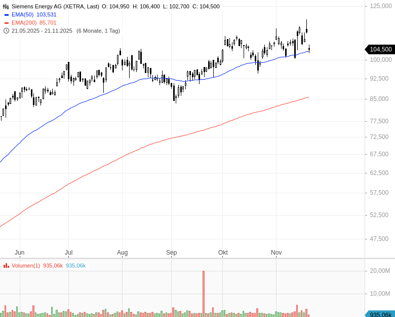Entsprechend positiv fiel die Reaktion der Analysten aus. JPMorgan sprach von einer überzeugenden Vorstellung und hob hervor, wie stark der bereits gebuchte Auftragsbestand zur künftigen Margensteigerung beiträgt. Das Rückkaufvolumen von 6 Mrd. EUR liege klar über den Erwartungen. Zugleich wertete Analyst Phil Buller die strategische Fokussierung auf Märkte mit Spitzenpositionen als mögliches Indiz für einen späteren Rückzug aus dem Onshore-Windgeschäft.