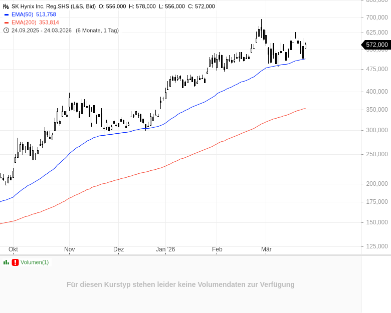 - SK Hynix Inc. Reg.SHS - WKN: A1JWRE - ISIN: US78392B1070 - Kurs: 570,000 € (L&S)