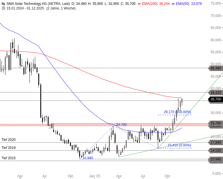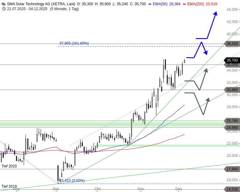 - SMA Solar Technology AGKursstand: 35,700 € (XETRA) - Zum Zeitpunkt der VeröffentlichungVerkaufenKaufen