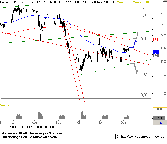 Rückblick: Ein blasenartiger Boom im Immobilienmarkt in China kombiniert mit einer sich abkühlenden Wirtschaftsentwicklung hat dafür gesorgt, dass die Aktie von SOHO China nach dem steilen Abverkauf im September bisher nicht so recht zu ihrem alten Hoch zurückfinden will.