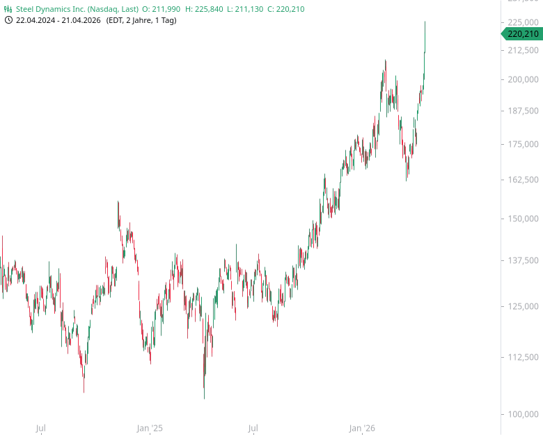 - Steel Dynamics Inc. - WKN: 903772 - ISIN: US8581191009 - Kurs: 220,180 $ (Nasdaq)