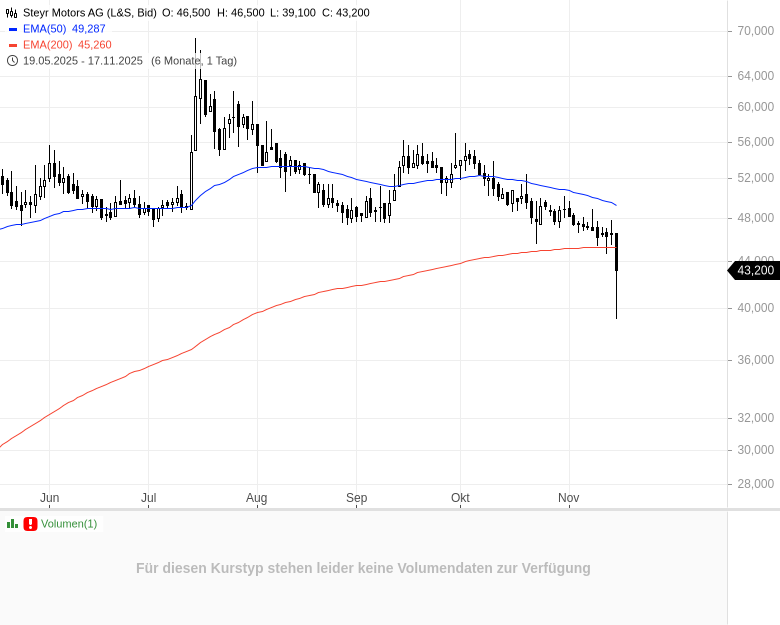 - Steyr Motors AG - WKN: A40TC4 - ISIN: AT0000A3FW25 - Kurs: 42,800 € (XETRA)