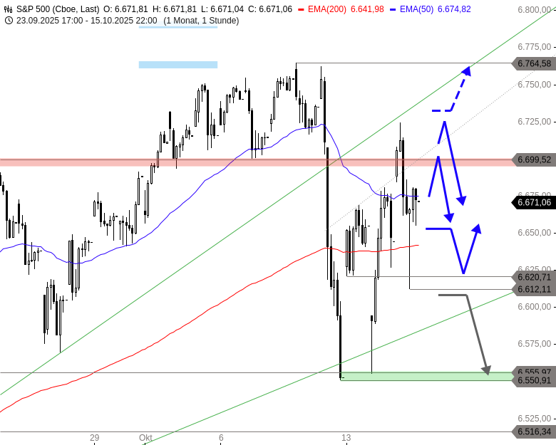 Dagegen sind unter 6.650 Punkten direkte Verkaufswellen bis 6.612 Punkte zu erwarten, die unter der Marke für einen Einbruch auf 6.550 Punkte sorgen dürften.