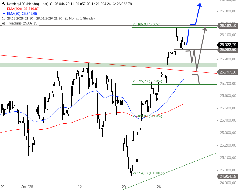 - Nasdaq-100Kursstand: 26.022,79 Pkt (Nasdaq) - Zum Zeitpunkt der Veröffentlichung