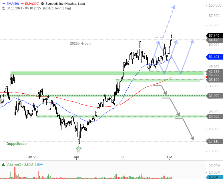 Chart aus der Plus-Analyse SYMBOTIC - Robotik-Aktie bestätigt Kaufsignal: