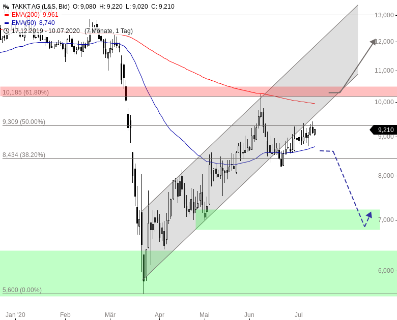 Im Zuge des Coronavirus-Selloffs vom Frühjahr kam die Aktie unter heftigen Verkaufsdruck und gab ausgehend vom Jahreshoch im Januar bei 13,02 EUR über 50 % nach. Erst im Bereich um 5,60 EUR stabilisierte sich der Kurs und es wurde eine Erholungswelle gestartet.
