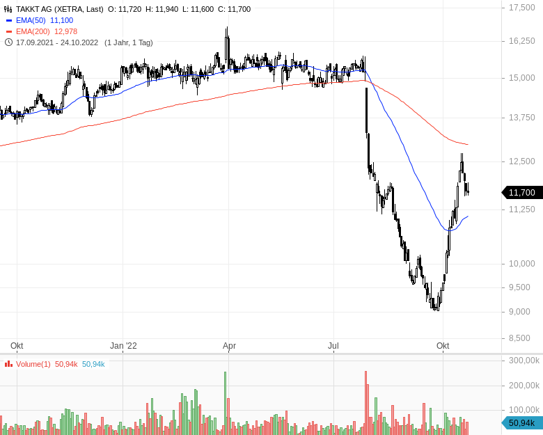 Fazit: TAKKT hat ein robustes Zahlenwerk abgeliefert und trotzt bislang erfolgreich den globalen Widrigkeiten. Die Aktie hat sich mit einem Plus von 30 Prozent seit Anfang Oktober sehr gut entwickelt, was sicherlich auch am Start des Aktienrückkaufprogramms liegt. Bis Mitte 2023 kann TAKKT eigene Aktien im Volumen von bis zu 25 Mio. EUR zurückkaufen. Dies könnte den Kurs weiter stabilisieren. Anleger sollten nach dem starken Kursanstieg mit einem Engagement zunächst auf schwächere Tage warten.