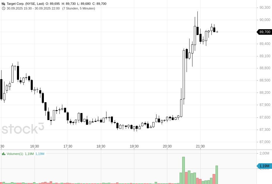Die Aktie von Target legte am Dienstag um 3 % gegenüber dem Tagestief zu, nachdem Fox Business über ein potenzielles Übernahmeinteresse durch eine Private-Equity-Gesellschaft berichtet hatte. Das Handelsvolumen der Aktie zog ebenfalls kräftig an. Auf Schlusskursbasis ging die Aktie allerdings nur mit einem Plus von einem knappen Prozent aus dem Handel.