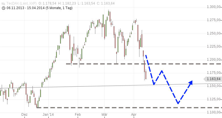 Mögliche Korrekturziele liegen im TecDAX bei 1.150 und 1.100 Punkten.