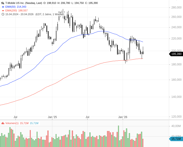 - T-Mobile US Inc. - WKN: A1T7LU - ISIN: US8725901040 - Kurs: 195,390 $ (Nasdaq)