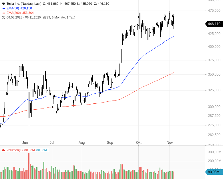 - Tesla Inc. - WKN: A1CX3T - ISIN: US88160R1014 - Kurs: 446,110 $ (Nasdaq)
