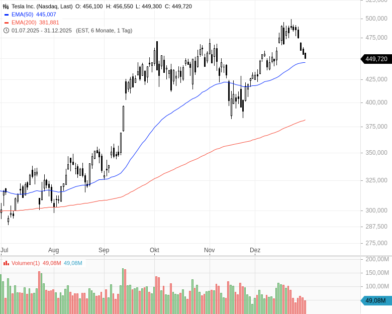Mit dem dritten Quartal war in den USA eine Steuergutschrift in Höhe von 7.500 USD für gekaufte Elektrofahrzeuge ausgelaufen. Dies hatte die Auslieferungen im dritten Quartal vorübergehend in die Höhe getrieben und belastete die Zahlen im vierten Quartal. Daneben drücken auch die Imageprobleme von Elon Musk und die zunehmende Elektrokonkurrenz aus China weiter auf die Auslieferungszahlen.