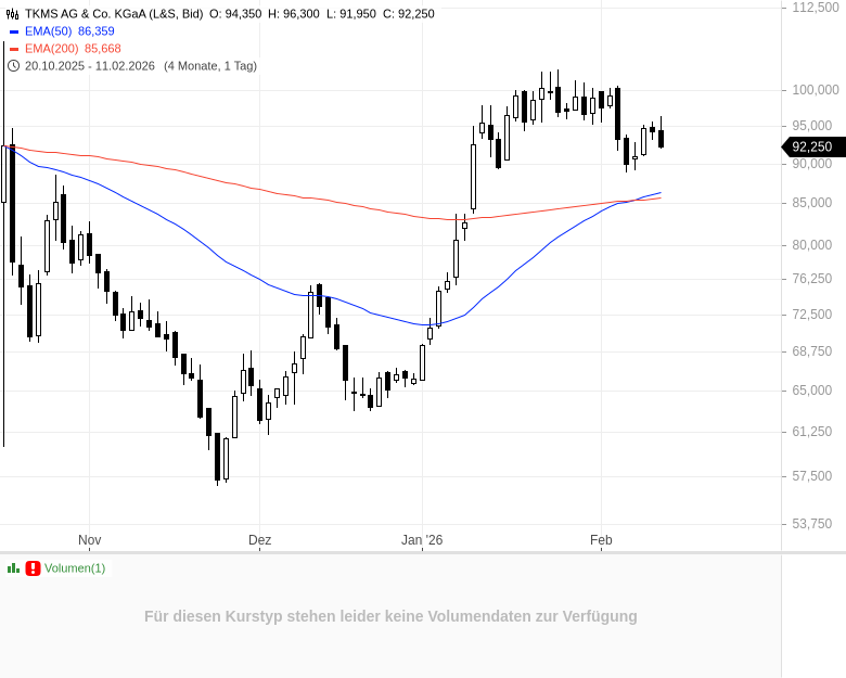 - TKMS AG & Co. KGaAKursstand: 93,500 € (XETRA) - Zum Zeitpunkt der VeröffentlichungVerkaufenKaufen