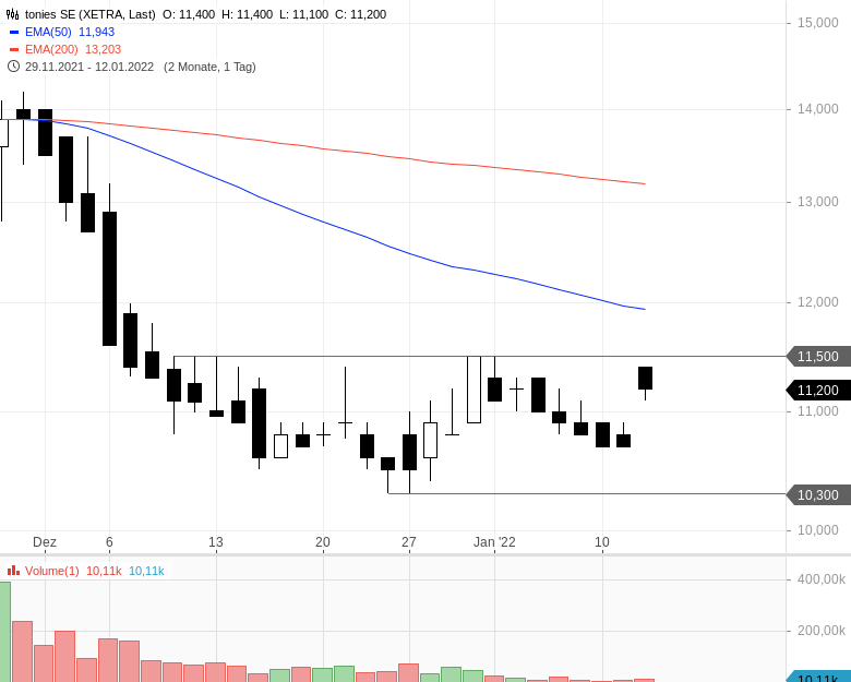 - tonies SE - WKN: A3CM2W - ISIN: LU2333563281 - Kurs: 11,200 € (XETRA)