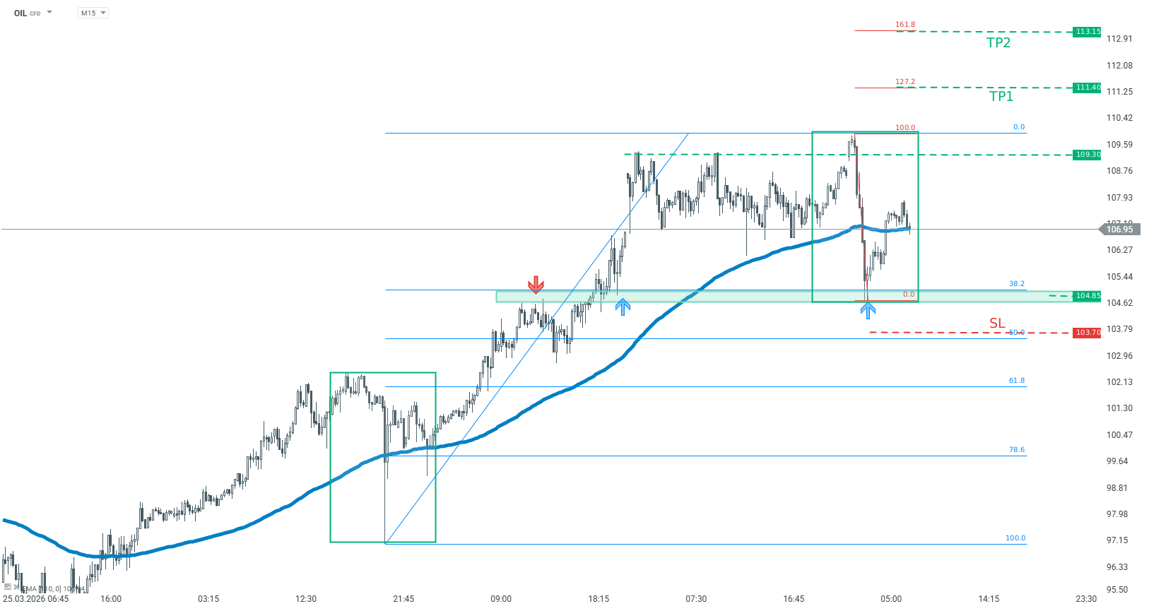 Ein weiterer bullischer Faktor für diese Tradingidee ist die Rückkehr des Kurses über den gleitenden 100-Perioden-Durchschnitt im M15-Chart, was kurzfristig eine positive Marktstruktur im Daytrading signalisiert.