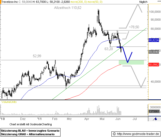 Rückblick: Die Travelzoo Aktie zeigt eine der unglaublichsten Rallies der letzten zwei Jahre - vom Tief bei 3,72 $ im Januar 2009 schoss die Aktie in einem steilen Aufwärtstrend wieder bis fast ans Allzeithoch bei 110,62 $hinauf!