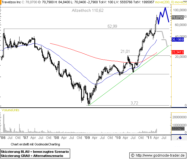 Rückblick: Die Travelzoo Aktie rutschte nach dem Allzeithoch bei 110,62 $ im Dezember 2004 bis auf 3,72 $ im Januar 2009 zurück. Von diesem Kurseinbruch erholte sich der Wert in den vergangenen Monaten fast komplett wieder, seit August sehen wird eine massiv beschleunigte Rally.