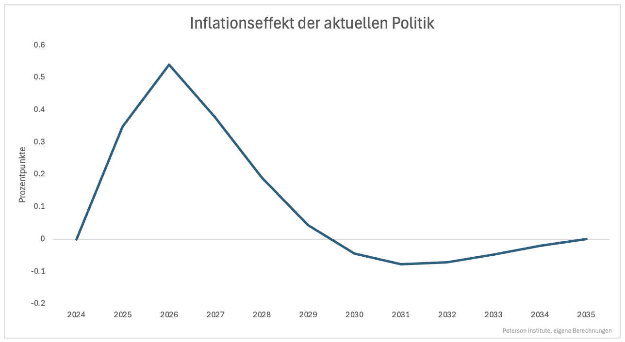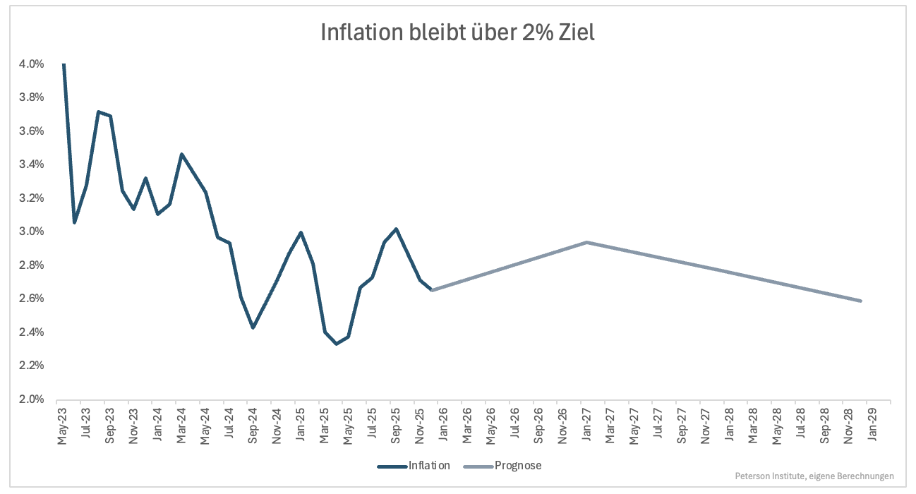 Nach einem Jahr Trump II zeigt sich, welche Folgen die Politik hat. Für 2025 wurde davon ausgegangen, dass Zölle die Inflationsrate um 0,4 Prozentpunkte anheben würde. Das Hoch soll in diesem Jahr mit knapp 0,6 Prozentpunkten erreicht werden. So gesehen war der Inflationsanstieg 2025 höher als man es vor einem Jahr erwartet hat.