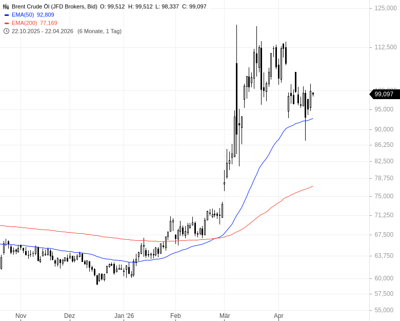 - Brent Crude Öl - WKN: 967740 - ISIN: XC0009677409 - Kurs: 99,097 $/bbl. (JFD Brokers)