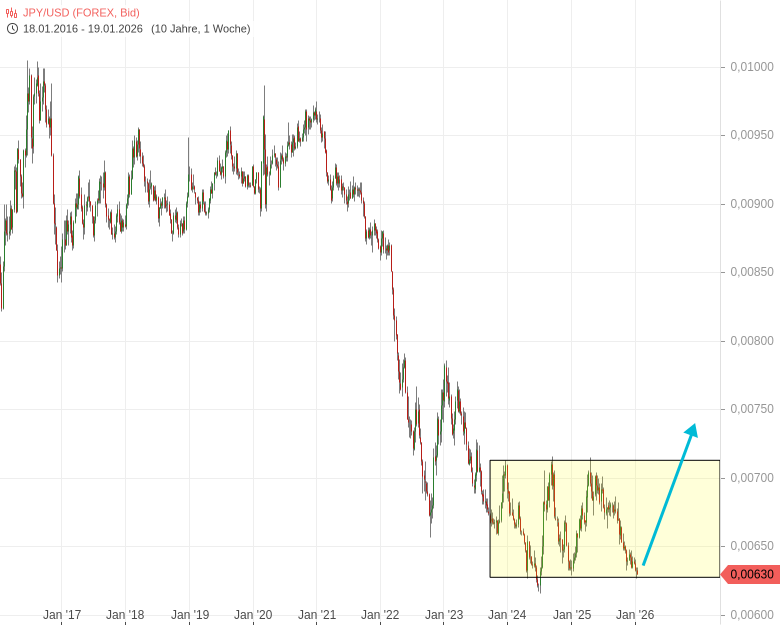Grund waren politische Unsicherheiten. So hat die neue japanische Premierministerin Sanae Takaichi das Parlament aufgelöst, sodass vorgezogene Neuwahlen am 8. Februar anberaumt wurden. Im Wahlkampf hat sie nun Pläne in Höhe von 135 Milliarden USD vorgestellt, wonach sie Steuersenkungen mit höheren Staatsschulden verbinden will. Zudem bekräftigte sie am Montag auch ihre Absicht, die japanische Umsatzsteuer von 8 % auf Lebensmittel für zwei Jahre auszusetzen.