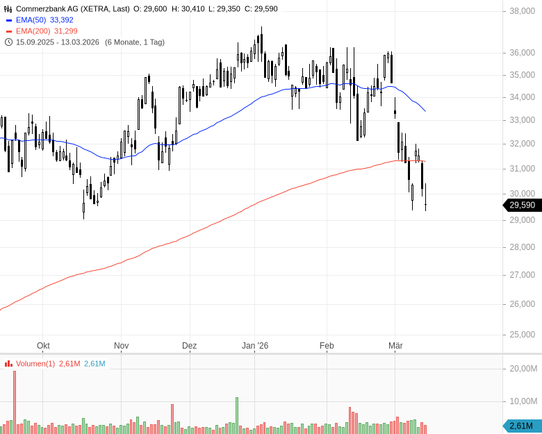 - Commerzbank AG - WKN: CBK100 - ISIN: DE000CBK1001 - Kurs: 29,590 € (XETRA)