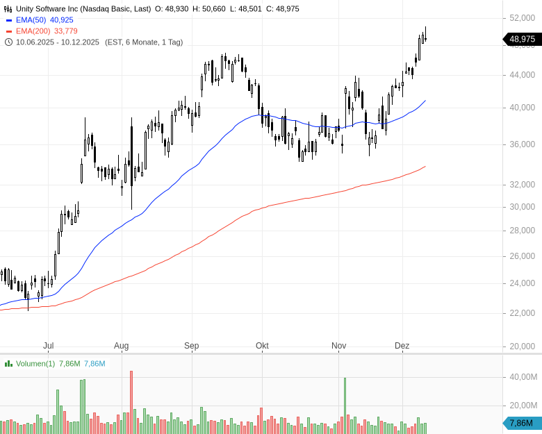 - Unity Software IncKursstand: 48,980 $ (NYSE) - Zum Zeitpunkt der VeröffentlichungVerkaufenKaufen
