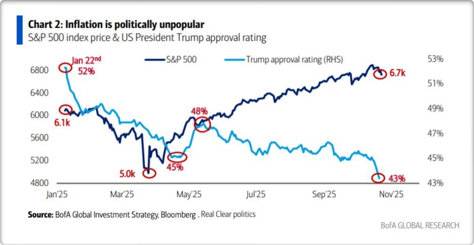 Da stimmt was nicht: S&P500 steigt, Trumpzustimmung fällt