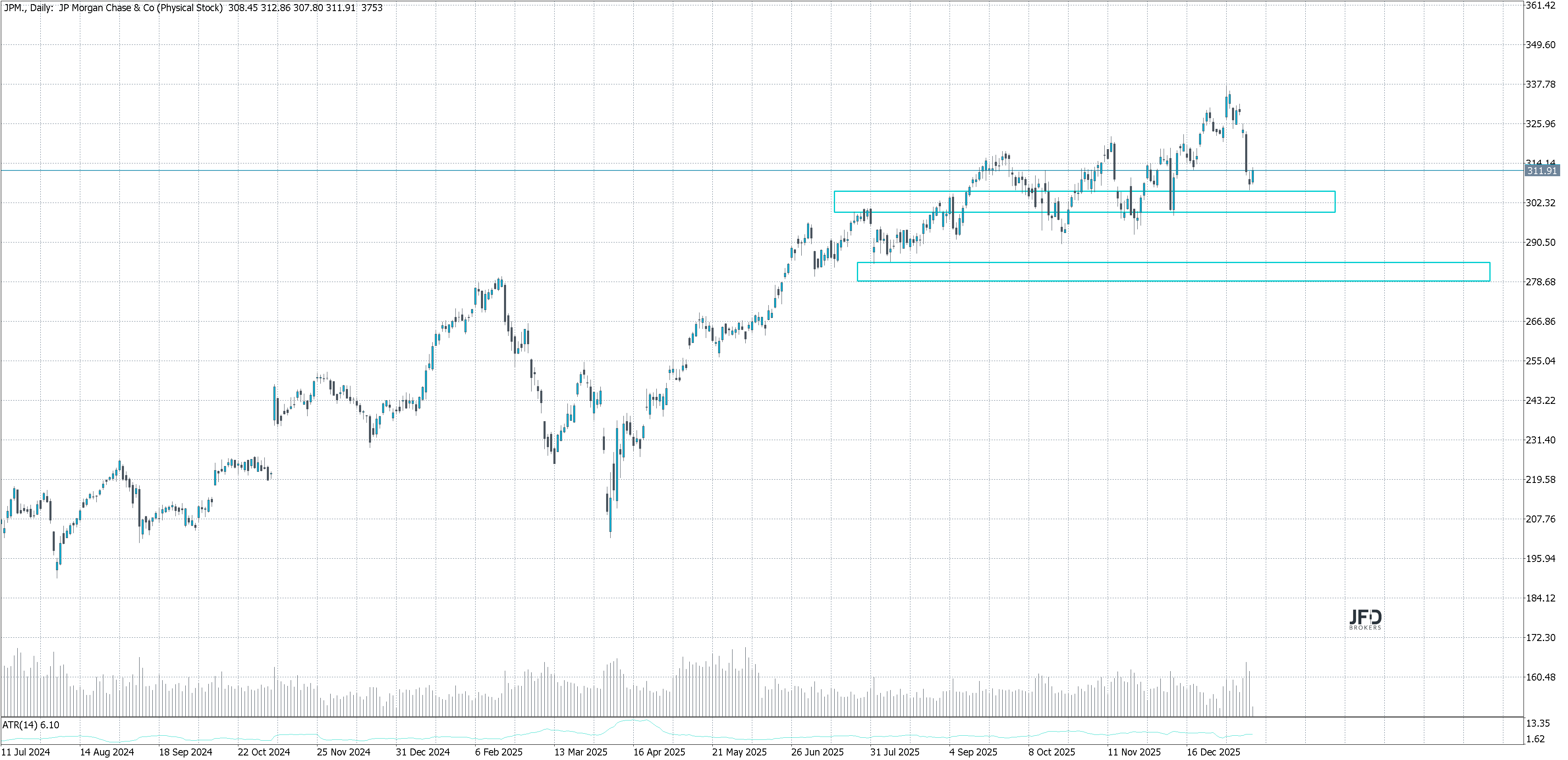 - JPMorgan Chase & Co.Kursstand: 312,320 $ (NYSE) - Zum Zeitpunkt der VeröffentlichungVerkaufenKaufen