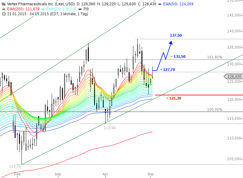 - Vertex Pharmaceuticals Inc.Kursstand: 126,43 $ (NASDAQ) - Zum Zeitpunkt der VeröffentlichungVerkaufenKaufen