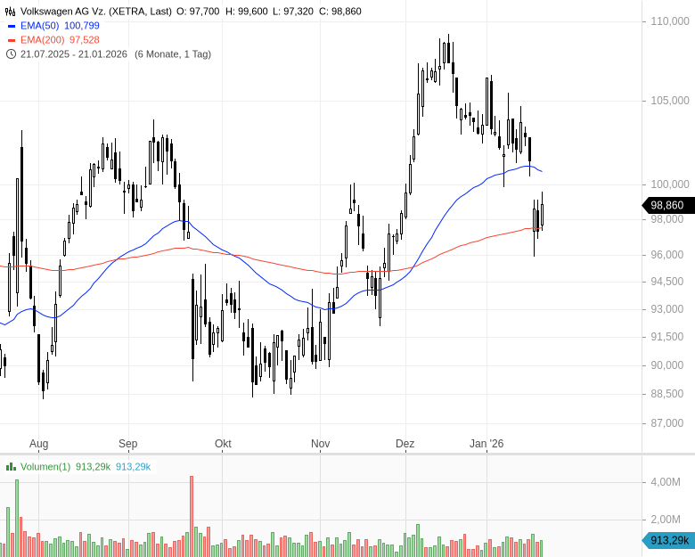 - Volkswagen AG Vz.Kursstand: 98,860 € (XETRA) - Zum Zeitpunkt der VeröffentlichungVerkaufenKaufen